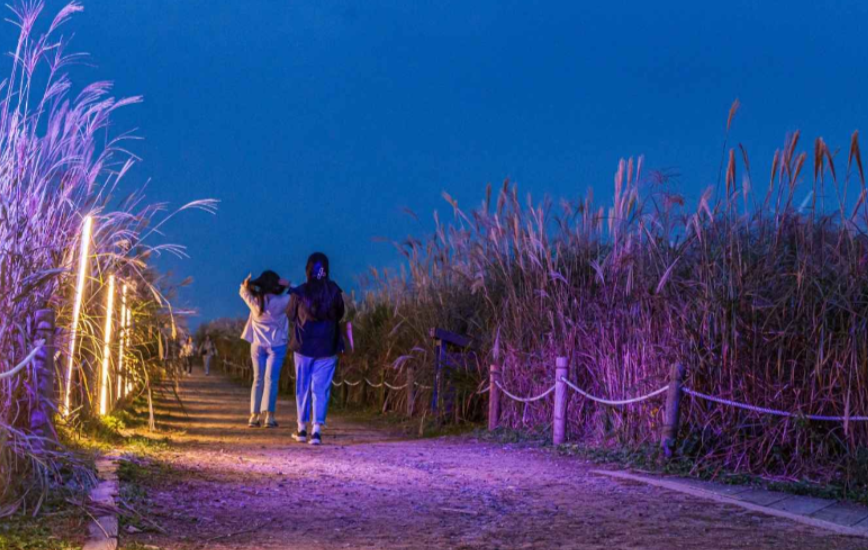 억새가 은은하게 빛나는 억새물결은 낮과 밤의 분위기가 달라 낮에는 억새의 자연스러운 아름다움을, 밤에는 조명과 어우러진 환상적인 장면을 제공합니다.