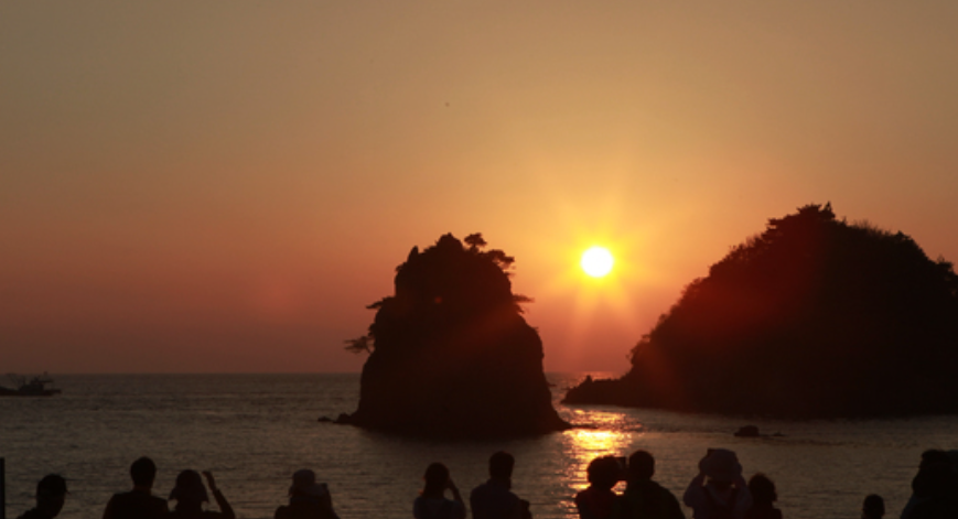 넓은 백사장과 울창한 소나무 숲이 어우러져 그림 같은 풍경을 자랑합니다. 특히 할미바위, 할아비바위는 낙조 명소로 유명하며, 붉게 물드는 석양 아래 펼쳐지는 낭만적인 풍경은 많은 사람들을 매료시킵니다.