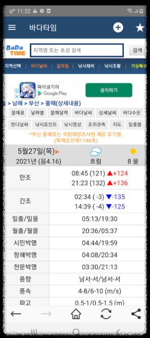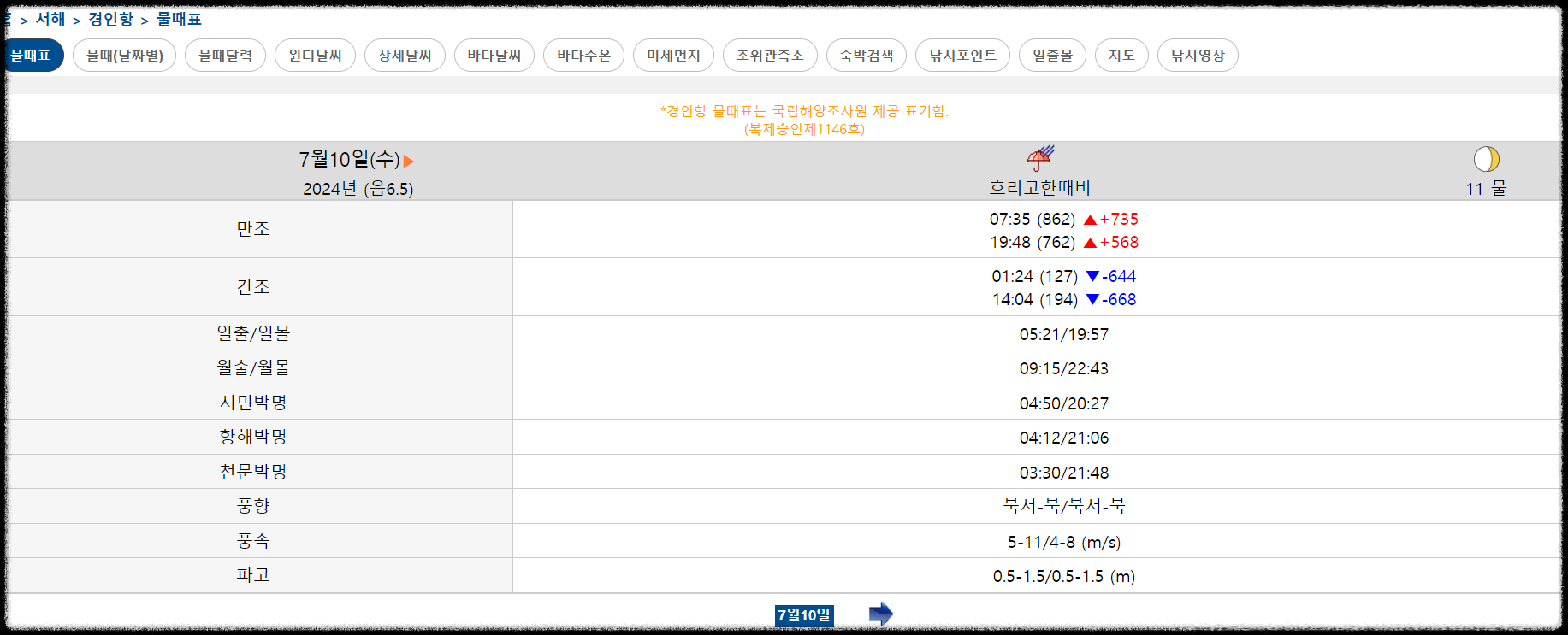 다음으로 물때표 확인하실떄에 개인적으로 가장 추천하는 사이트 하나 소개해 드립니다.