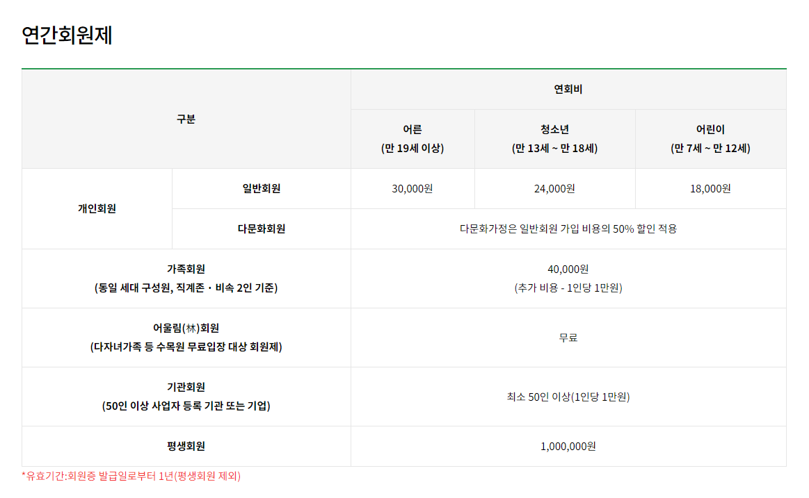 연간회원제와 관련된 사항은 아래의 사진을 참고해 보시기 바랍니다.