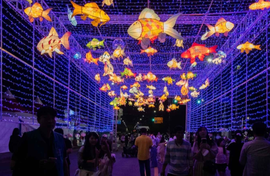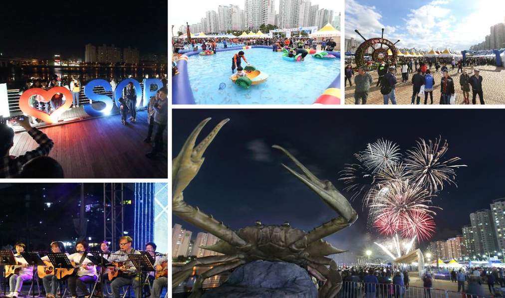 축제의 하이라이트 중 하나는 경관존입니다. 해양 어등 터널을 비롯한 야경 경관은 축제의 밤을 화려하게 수놓으며, 새랑이와 게랑이라는 캐릭터를 활용한 대형 아트 벌룬이 설치되어 포토존으로도 인기를 끌고 있습니다.