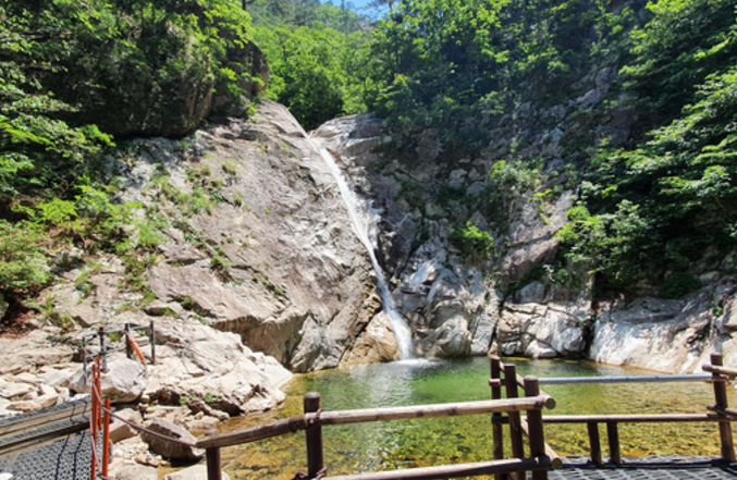 비룡폭포는 높이 약 40m의 웅장한 폭포로, 특히 봄철에는 녹아내리는 설산의 물이 합쳐져 더 큰 물줄기를 자랑합니다. 겨울에는 얼어붙은 폭포가 장관을 이루어 또 다른 매력을 선사합니다. 폭포 아래 마련된 전망대에서는 가까이에서 물줄기를 감상하며 시원한 물안개를 맞을 수 있습니다.