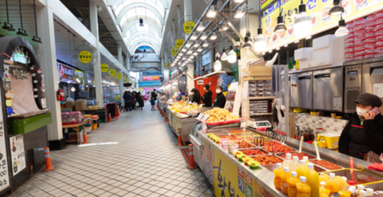 젓갈어시장골목, 청과골목, 닭전골목, 순대골목, 고추골목 등 취급 품목별로 구분된 골목길을 따라 걷다 보면 다양한 먹거리와 볼거리를 즐길 수 있습니다.