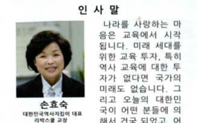 이후 손효숙 대표는 대한민국의 올바른 역사관 확립과 청소년 인재 양성을 목표로 2019년 12월 민간 역사교육단체인 ‘리박스쿨’을 설립하고 대표로 취임하였습니다.