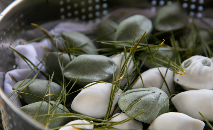 찜기에 찌기: 찜기에 젖은 면보를 깔고 솔잎을 얹은 후, 빚은 송편을 올립니다. 찜기에 물을 붓고 끓으면 송편을 넣고 20-30분 정도 쪄줍니다. 송편이 투명하게 익으면 꺼냅니다.