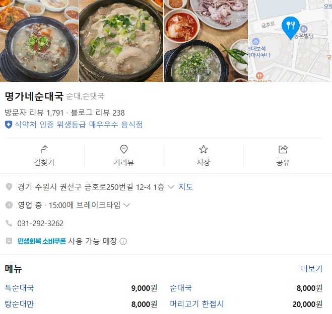 다음으로 소개할 명가네순대국은 독특하게 남자용과 여자용 메뉴를 구분하는 순댓국 전문점입니다. 남자용은 머리 고기가 풍성하게 들어 있어 고기 맛을 진하게 즐길 수 있고, 여자용은 보다 부드러운 살코기 위주의 구성으로 부담 없이 먹기 좋습니다.