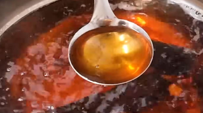 수정이 충분히 끓어 부드럽고 걸쭉한 상태가 되면 불을 끄고, 냄비에 덩어리가 생기지 않도록 잘 저어줍니다. 그 후, 수정이 식을 때까지 기다리며 점차 차가워지도록 합니다.
