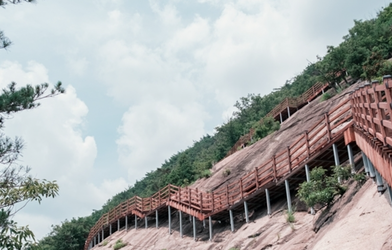 용궐산 정상 부근에 설치된 하늘길은 투명한 유리 바닥 구간도 마련되어 있어 아찔한 스릴을 만끽할 수 있습니다.