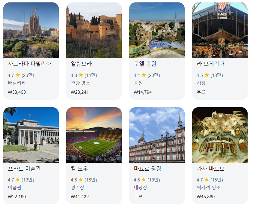 스페인은 한국인들에게도 매력적인 여행지로 인기가 높습니다. 특히 바르셀로나와 마드리드는 한국인 관광객들이 가장 많이 찾는 도시입니다.