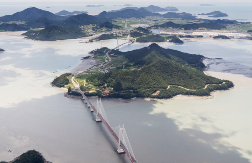 안좌도 박지도와 반월도를 잇는 퍼플교는 이름 그대로 보라색으로 칠해진 다리입니다. 2021년 한국관광공사가 선정한 '가고 싶은 섬'에 선정될 정도로 아름다운 풍경을 자랑하는 곳이죠.