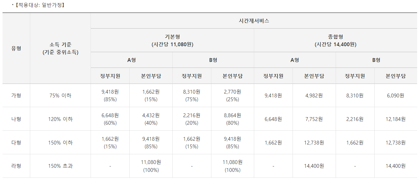 참고로 이러한 조건이 있지만 정부지원 대상에 해당하지 않는 다고 하더라도 전액 본인부담을 하시면 서비스 이용이 가능하오니 참고하시기 바랍니다.