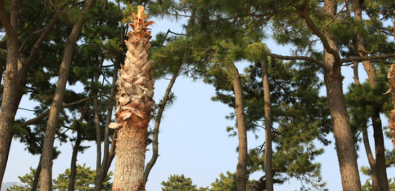 해변 뒤편에는 100년 이상 된 동백나무 숲이 있어 겨울에는 붉은 동백꽃이 만발하여 장관을 이룹니다.