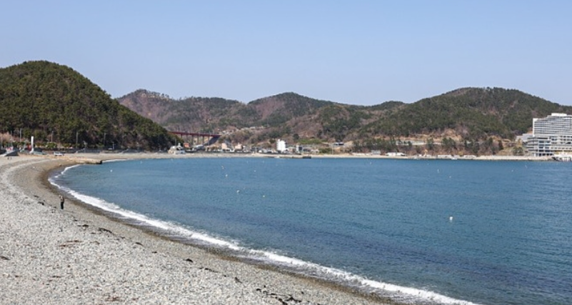 해변은 작지만 아늑하고 조용하며, 깨끗한 물과 몽돌이 어우러져 독특한 분위기를 자아냅니다. 해변 주변에는 다양한 맛집과 카페가 있어 데이트 코스로도 인기가 높습니다.