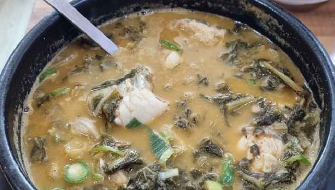 인근에는 섬 경도로 향하는 선착장과 해수 사우나 시설도 위치하고 있어 식사 전후로 다양한 경험을 즐길 수 있습니다. 동백꽃식당의 주력 메뉴는 붕장어 요리이며, 특히 장어뼈를 오랜 시간 푹 고아 우려낸 깊은 육수에 숙주, 고사리, 우거지 등과 함께 통통하게 살이 오른 장어를 넣어 끓여낸 우거지 산통장어탕은 이곳을 찾는 많은 이들에게 사랑받는 메뉴입니다. 입안에서 살살 녹는 듯한 부드러운 장어 살코기의 식감은 잊을 수 없는 미식 경험을 선사합니다.