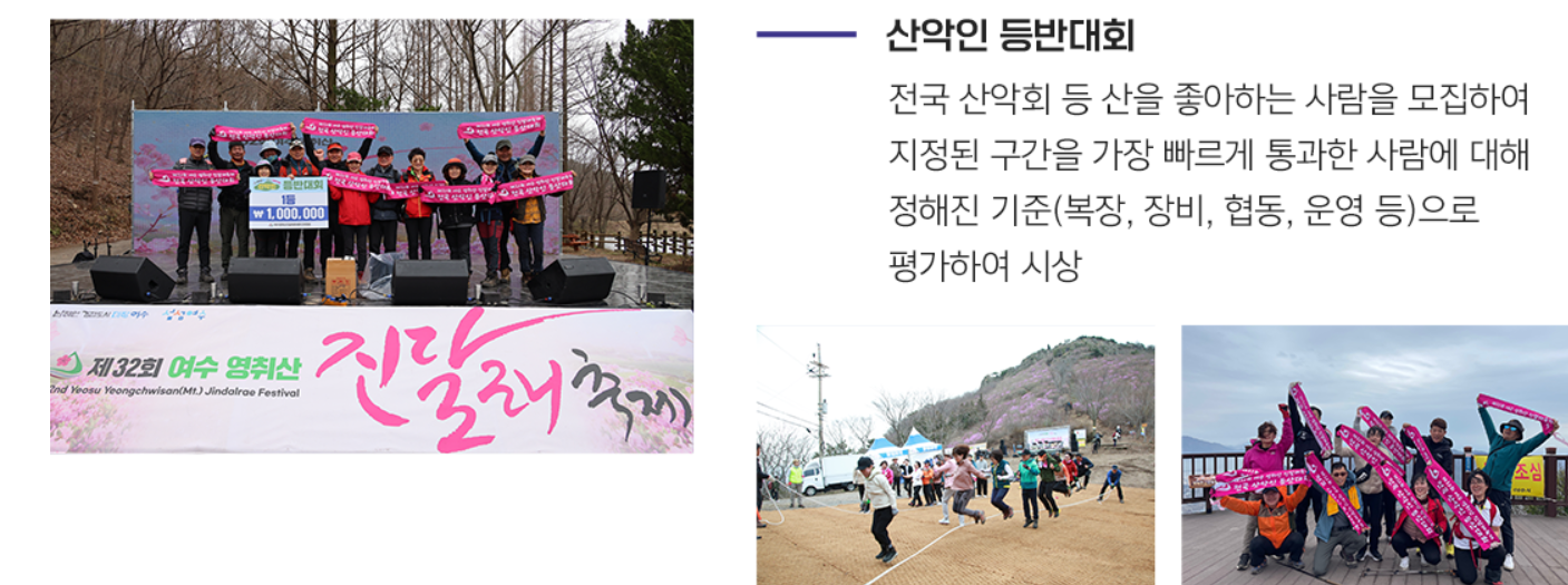 전국 3대 진달래 군락지로 꼽히는 전남 여수 영취산은 매년 봄, 붉은 진달래의 향연으로 물들어 봄을 알리는 대표적인 축제의 장이 됩니다.