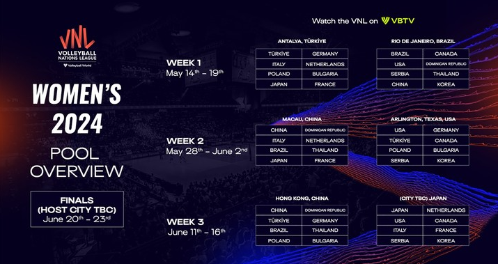 현재 40위까지 세계랭킹 순위가 떨어져 있는데 2024 VNL 스케쥴일정이 발표되었습니다. 5월15일부터 6월 16일까지 경기를 치루는 일정입니다.