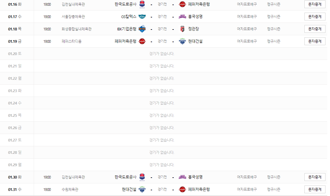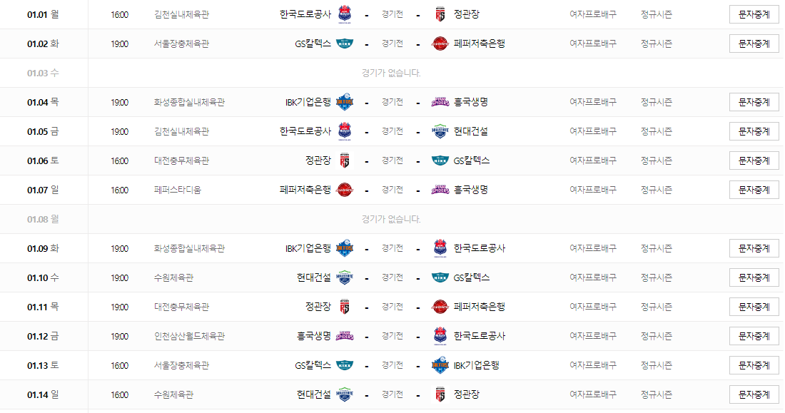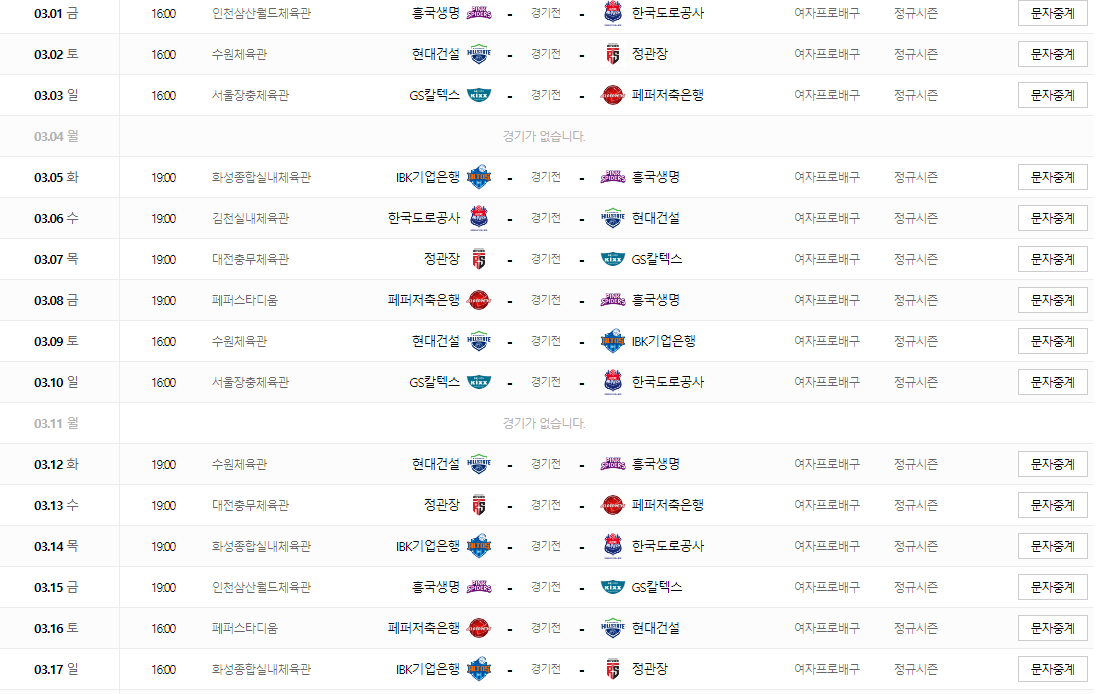 3. 여자 배구 주요 일정