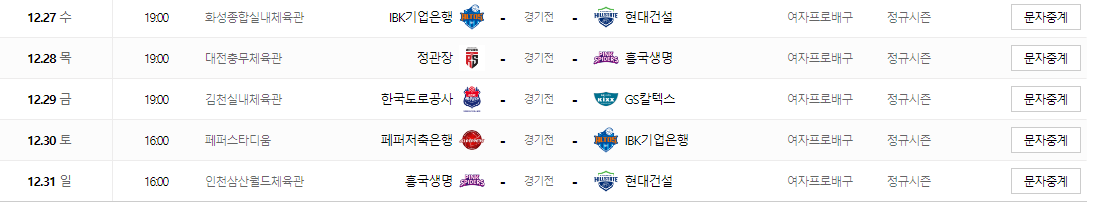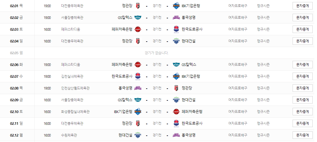 4. 여자 국가대표 일정