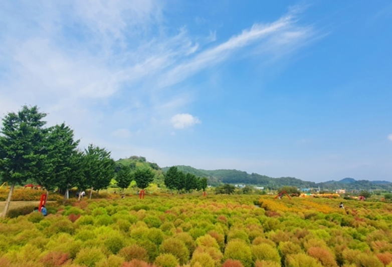 이곳은 가을이면 푸른 댑싸리가 붉게 물들어 장관을 이루는 곳입니다. 넓게 펼쳐진 댑싸리밭은 마치 동화 속 풍경을 연상시키며, 사진 촬영 명소로도 인기가 높습니다.