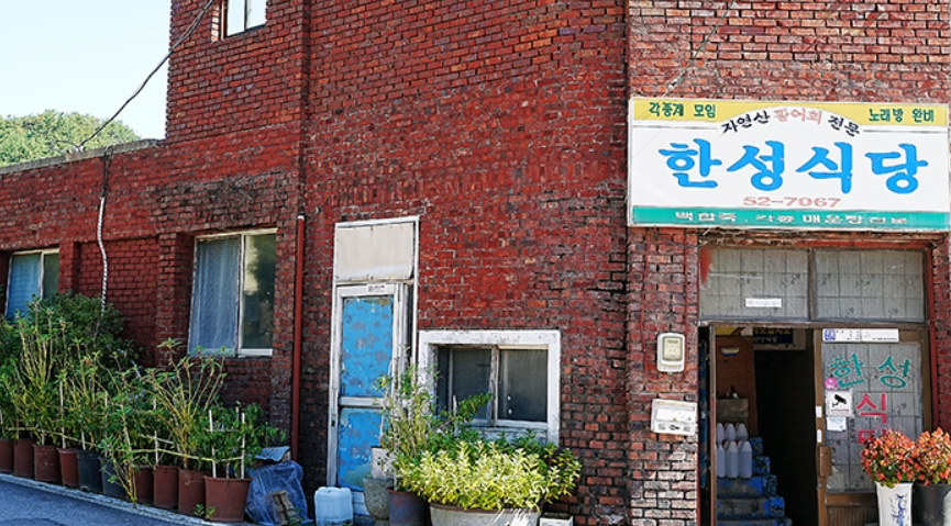 오랜 세월의 흔적이 느껴지는 공간에서 맛있는 백합죽을 즐길 수 있는 곳입니다. 낡은 간판과 오래된 TV, 세월이 깃든 벽지와 가구들은 한성식당의 오랜 역사를 보여줍니다.