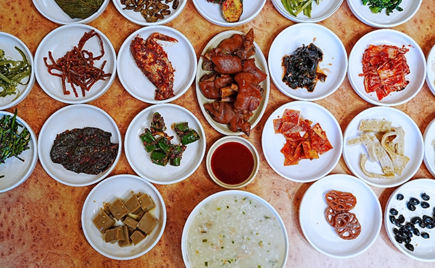 큼직한 백합이 푸짐하게 들어간 백합죽은 백합 특유의 감칠맛이 깊게 우러나와 맑고 개운한 국물 맛을 자랑합니다. 해장용으로도 좋을 만큼 시원한 맛이 일품입니다. 백합죽 외에도 20가지가 넘는 푸짐한 밑반찬이 함께 제공됩니다.