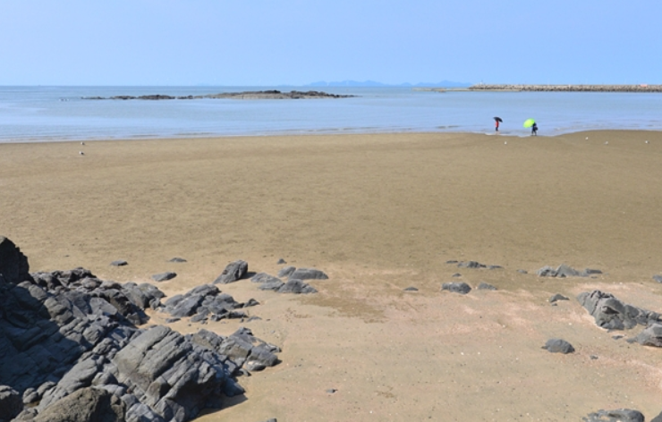 얕은 수심과 잔잔한 파도는 아이들이 안전하게 물놀이를 즐기기에 안성맞춤입니다. 해변 뒤편으로는 소나무 숲이 조성되어 있어 시원한 그늘에서 휴식을 취할 수 있습니다.