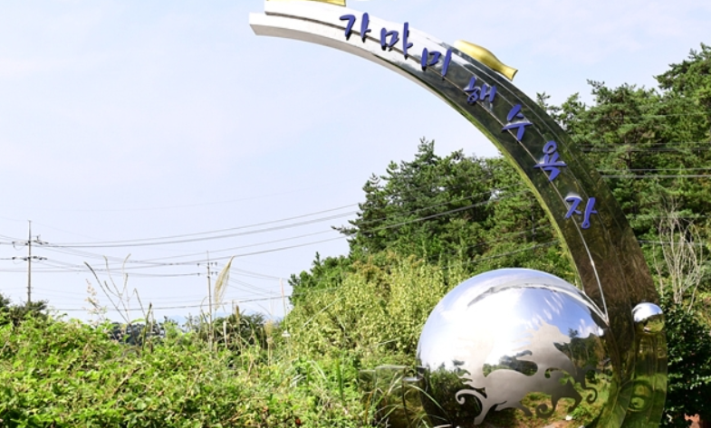 가마미해수욕장은 깨끗한 백사장과 얕은 수심, 그리고 울창한 소나무 숲으로 유명한 해수욕장입니다. 1km 길이의 넓은 백사장은 고운 모래로 되어 있어 맨발로 걸어도 좋습니다.