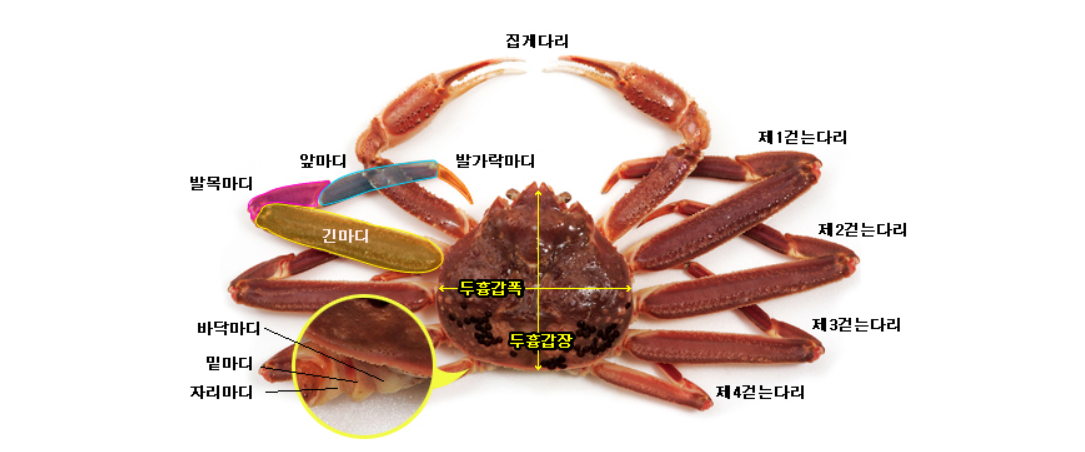 게의 다리모양이 대나무와 흡사하여 대게라 부르게 되었습니다. 대게과에 속하는 가장 큰 게로서 크기도 크지만 맛이 일품입니다.