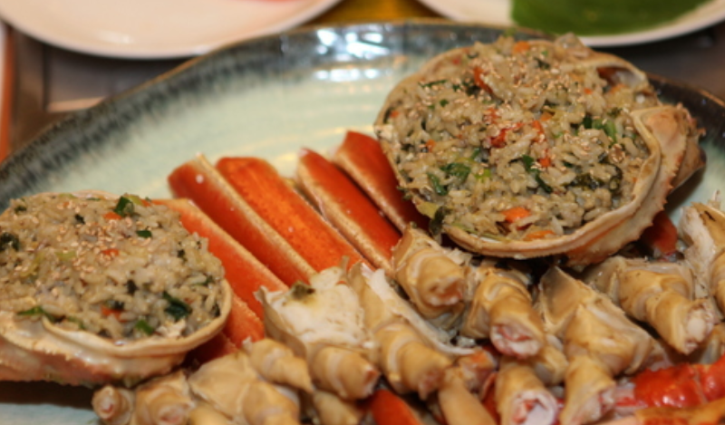 '남은대게'에서는 대게를 주문하면 게장, 소라 초회, 해파리냉채, 문어숙회, 꽁치구이, 대게 튀김, 새우튀김, 대게 치즈구이 등 푸짐한 기본 반찬이 한 상 가득 차려져 나옵니다.
