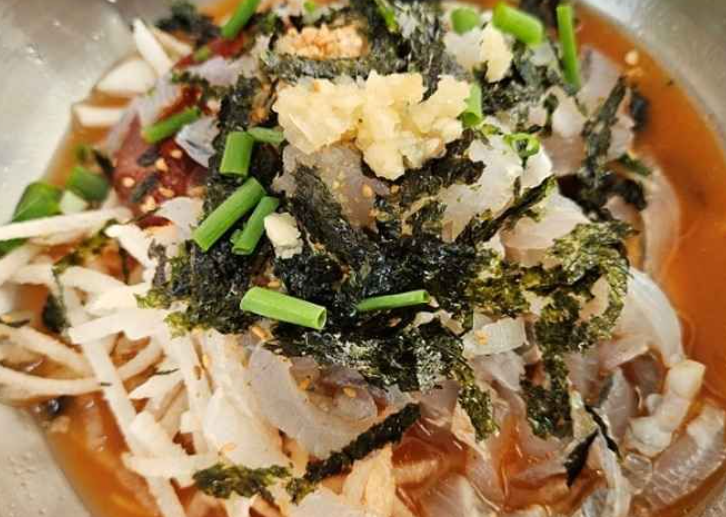대표 메뉴인 물가자미회는 신선한 재료 본연의 맛을 그대로 느낄 수 있습니다. 이 외에도 물가자미 정식, 찌개, 횟밥 등 다양한 물가자미 요리와 오리누룽지 백숙을 맛볼 수 있습니다. 특히, 신선한 재료와 뛰어난 맛으로 인해 언제나 손님들의 발길이 끊이지 않습니다.