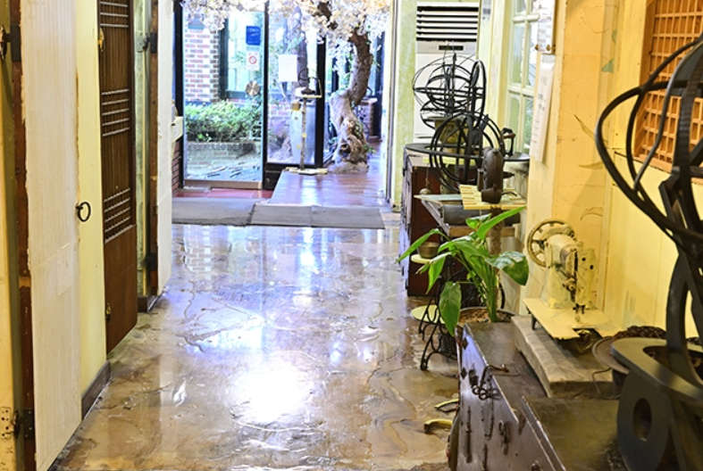 흙이야기 건물은 이름처럼 전체가 흙으로 지어져 있어 독특한 분위기를 자아냅니다. 넓은 주차 공간과 함께 민속촌을 연상시키는 건물 내부는 기왓장, 고가옥 나무 테이블과 의자, 아름다운 등이 어우러져 현대와 전통의 조화를 느낄 수 있습니다.
