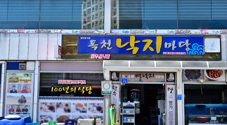 다음 소개해 드릴 곳은 낙지마을로 유명한 독천에서 오랜 세월 사랑받아온 낙지요리 전문점, '독천낙지마당'입니다. 세월의 흔적이 느껴지는 간판과 외관에서부터 노포의 깊은 맛이 느껴지는 곳이죠.