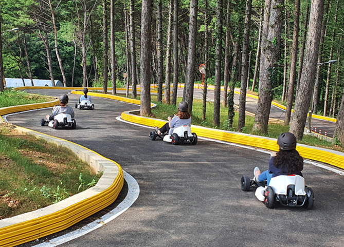 특히, 주변의 울창한 숲과 푸른 하늘이 어우러지는 풍경은 일상에서 벗어나 자연과 하나 되는 기분을 느끼게 합니다. 또한, 체험장에는 방문객들을 위한 쉼터와 간단한 음료를 제공하는 카페도 마련되어 있어 카트를 타며 지친 몸을 잠시 쉬어갈 수 있습니다.