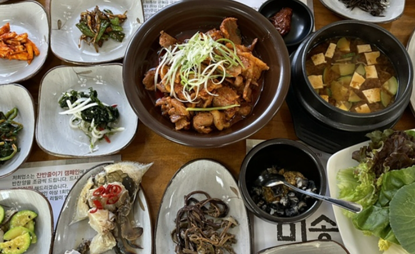 다음 소개해드릴 곳은 인천 영종도에 위치한 쌈밥 전문점 미송쌈정식입니다. 이곳은 푸짐한 쌈 채소와 다양한 반찬, 그리고 맛있는 제육볶음과 생선구이를 즐길 수 있는 곳으로, 특히 쌈정식 3인 이상 주문 시 제육볶음과 생선구이를 1회 리필할 수 있다는 점이 매력적입니다.