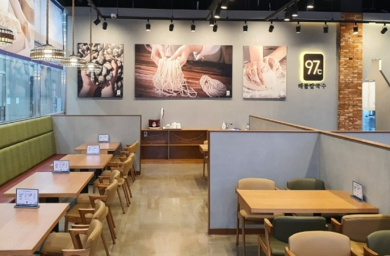대표 메뉴인 97도씨해물칼국수는 바지락, 홍합, 새우 등 신선한 해물이 가득 들어가 시원하고 깊은 국물 맛을 자랑합니다. 쫄깃한 면발과 함께 즐기는 해물의 풍미는 정말 일품입니다.