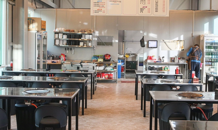 철이네물회전문점은 외부에 신선한 해산물이 가득한 수족관과 야외 테이블이 마련되어 있어 더욱 특별한 식사 경험을 선사합니다.
