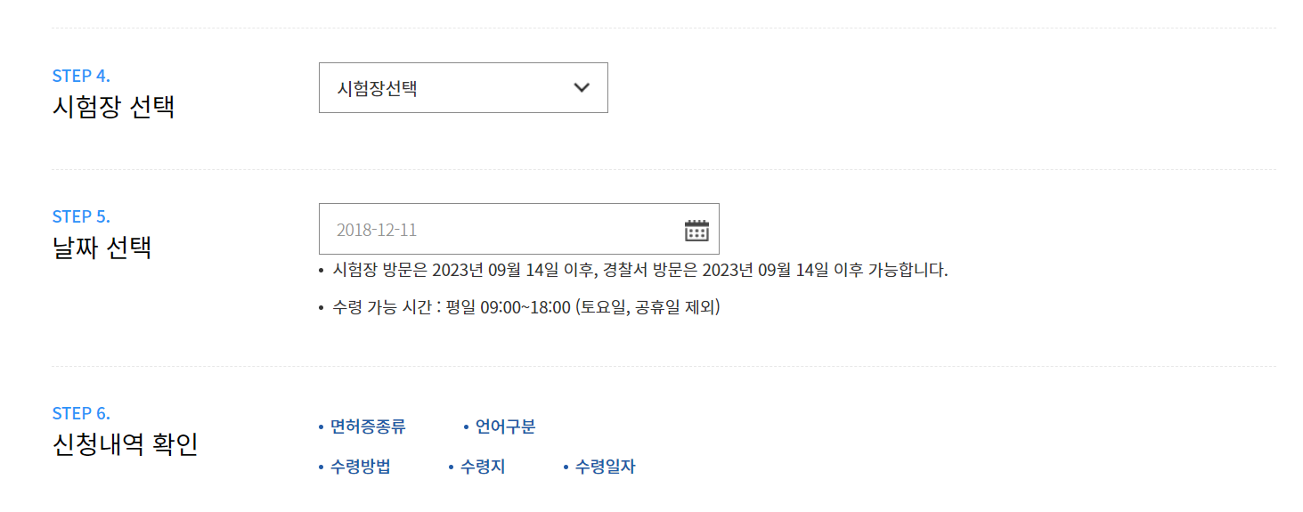 또한 온라인으로 신청을 하는 것이지만 결국 실제 면허증 수령은 경찰서 또는 시험장을 방문하셔서 찾으셔야 합니다. 15일이 지난 후에 찾으실 수 있으니 참고하시기 바랍니다.