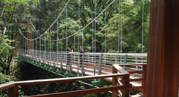 다리 중앙부는 투명한 강화유리로 되어 있어 아래를 내려다볼 수 있는데, 강과 절벽이 어우러진 경관이 발아래 펼쳐져 마치 하늘 위를 걷는 듯한 기분을 느낄 수 있습니다.