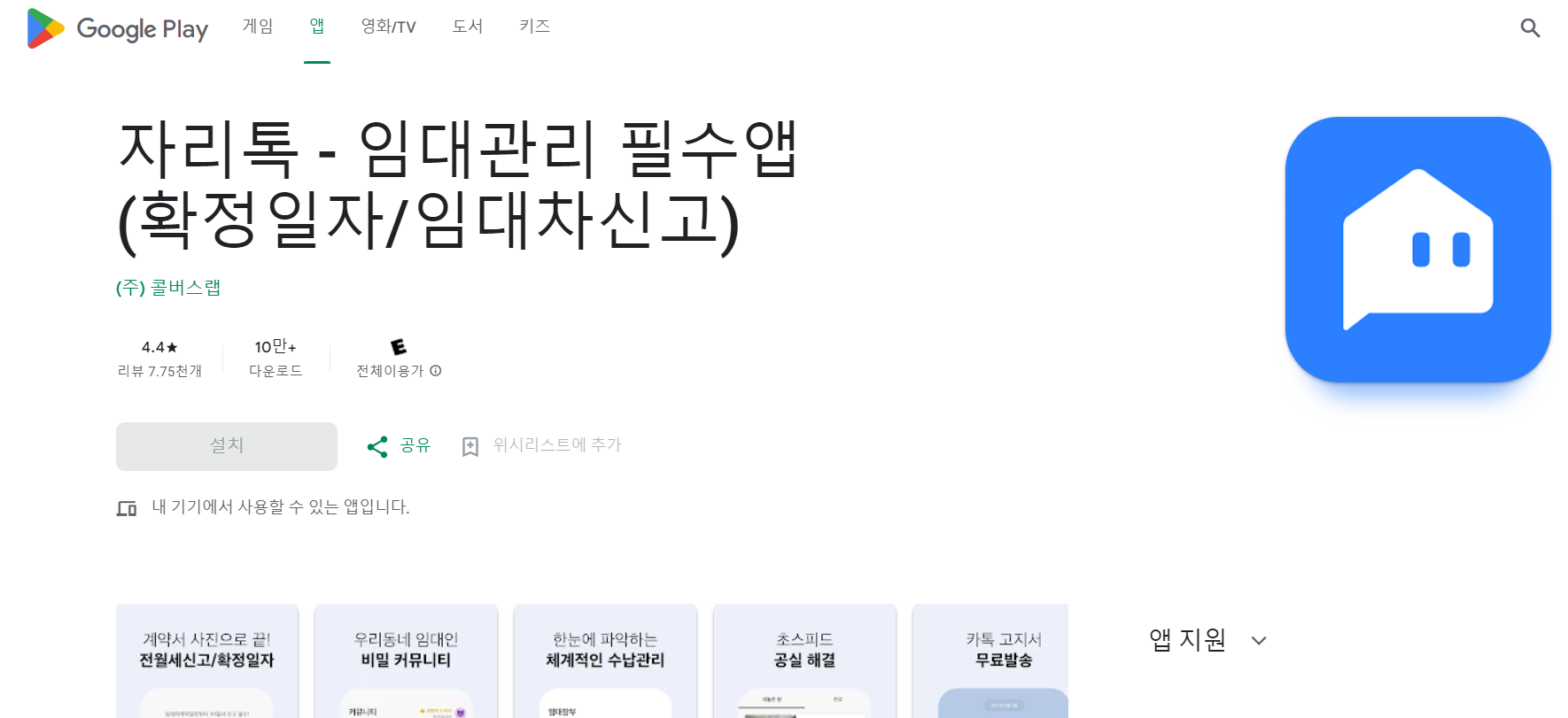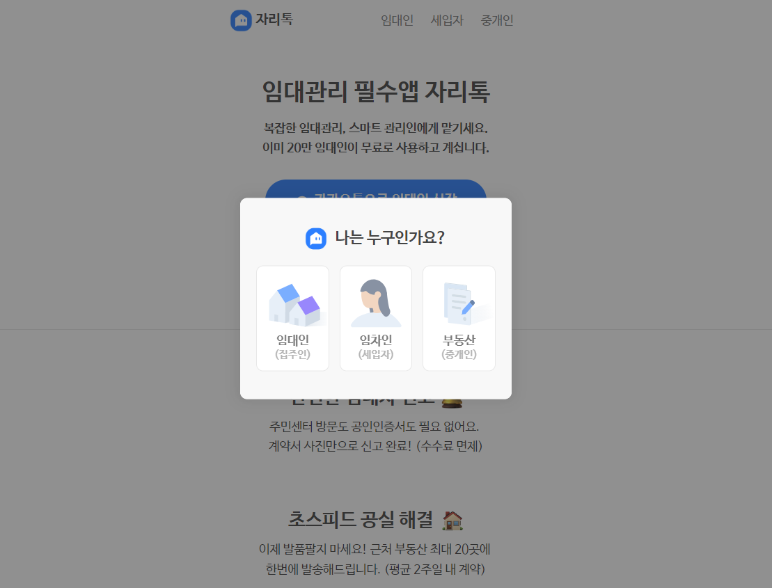 두번째로 자리톡이라는 대행 서비스를 이용하실 수 있습니다. 자리톡에서 하시려면 홈페이지 접속 하시거나 어플을 다운로드 받으시기 바랍니다. 임대유형, 비용, 관리비, 임대료 납부일 등의 정보를 입력하시고 계약 정보와 계약종료일, 임대인 휴대폰 번호 정보 입력하신후에 완료를 누르시면 됩니다.