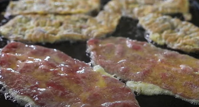 육전을 구울 때 뚜껑을 덮으면 육즙이 증발하여 촉촉한 육전을 만들 수 있습니다.