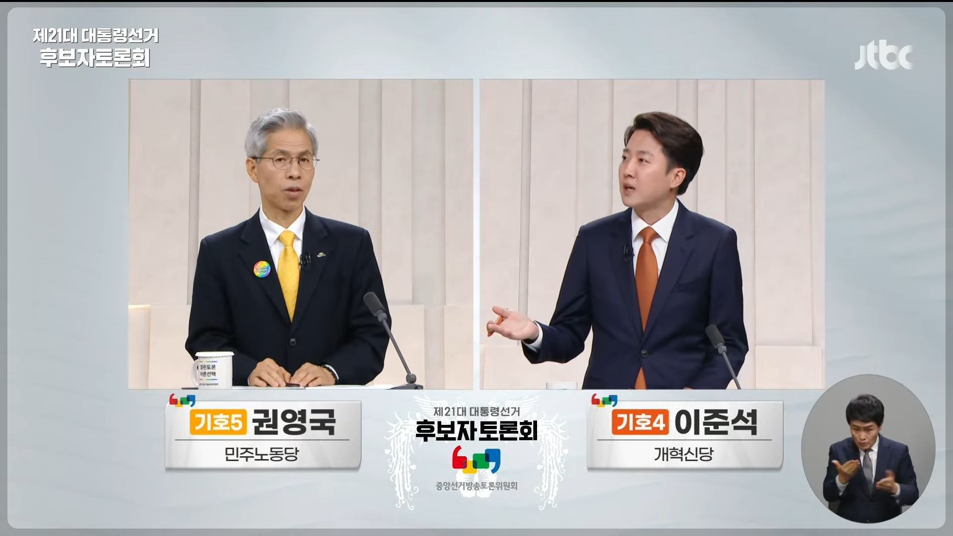2025년 5월 27일 밤, 대선 후보 TV 토론회에서 이준석 개혁신당 후보가 여성 신체와 관련된 원색적 표현을 인용하며 권영국(민주노동당), 이재명(더불어민주당) 후보에게 “이거는 여성 혐오에 해당합니까, 아닙니까?”라고 질문한 장면이 전국에 생중계됐습니다.