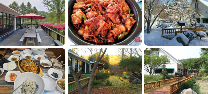 식사 후에는 야외 테이블에서 커피를 마시며 사계절의 아름다운 자연을 만끽할 수 있습니다. 중부고속도로 남이천 IC에서 가까워 접근성이 좋으며, 비에이비스타 cc로 향하는 길목에 위치해 있습니다. 주소: 경기도 이천시 모가면 어농로 110-71
