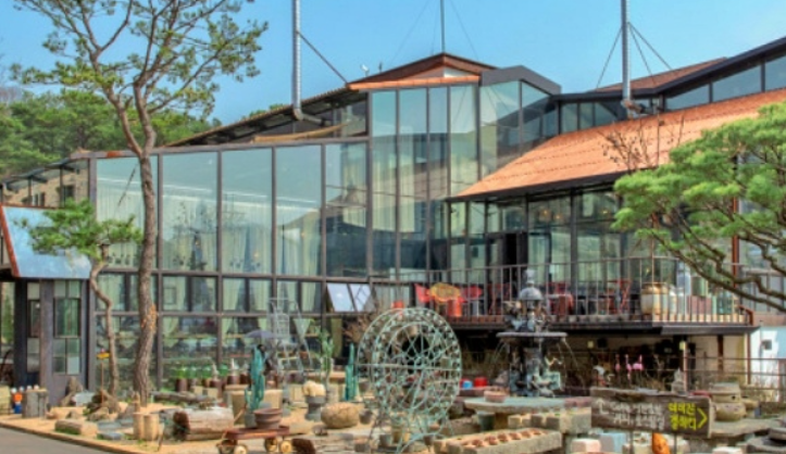 여주시에 위치하지만 이천과 인접한 이진상회는 16,000 제곱미터의 넓은 부지에 카페, 한정식집, 인도 커리집, 소품 가게가 함께 있는 복합 문화 공간입니다.