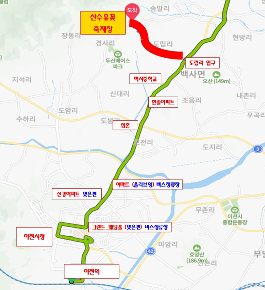 축제가 열리는 백사면은 송말리, 도립리, 경사리, 조읍리 등 원적산 기슭에 위치한 마을들로 이루어져 있으며, 이곳은 오래전부터 산수유나무가 군락을 이루며 자라온 지역입니다.