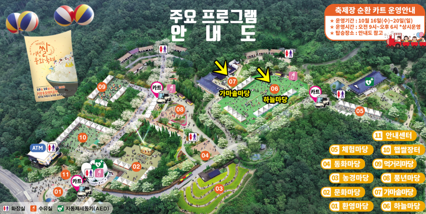 축제장으로 이동 시, 주차장에서 셔틀버스를 이용하거나 대중교통을 활용해주시기 바랍니다.