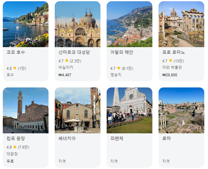 이러한 친숙함과 더불어, 이탈리아 특유의 낭만적인 분위기와 열정적인 문화는 한국인 관광객들에게 매력적인 요소로 작용하고 있습니다.
