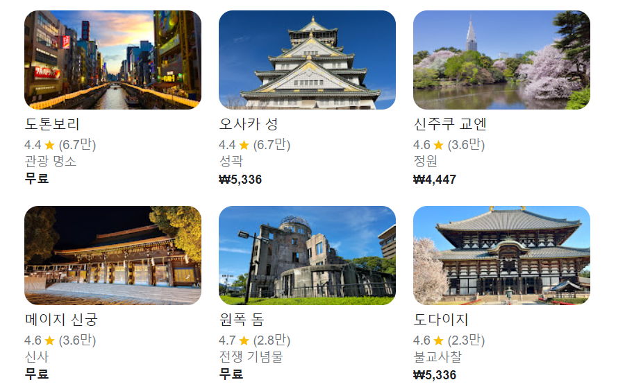 일본에는 굉장히 다양한 방문지들이 있으며 대표적으로 추천해 드릴만한 명소들을 안내해 드리겠습니다.