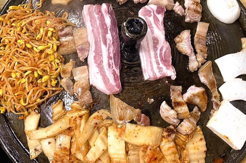 솥뚜껑 위에 고기를 올려 굽고 김치와 콩나물도 솥뚜껑 주위로 둘러 함께 구워 먹는데 김치와 콩나물은 계속 리필할 수 있습니다. 마지막에 밥을 볶아 먹어도 별미입니다. 경기도 고양시 일산동구 강송로73번길 7-17에 자리합니다.