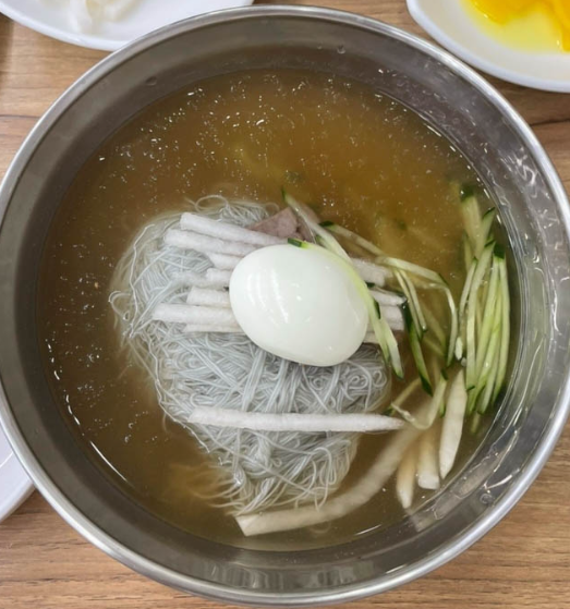 갈현냉면의 냉면은 고소하고 짭짤한 육수가 특징입니다. 물냉면은 아주 얇고 꼬들꼬들한 면발과 담백한 육수의 조화가 일품입니다.