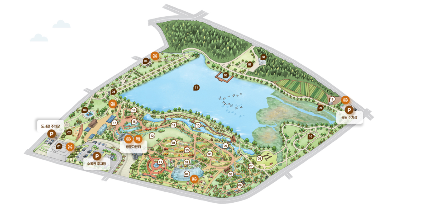 주차장은 해당 수목원의 주차장을 이용하실 수 있으며 주차장 외의 지역에서 주정차를 하면 과태료가 발생할 수 있으니 유의하시기 바랍니다.